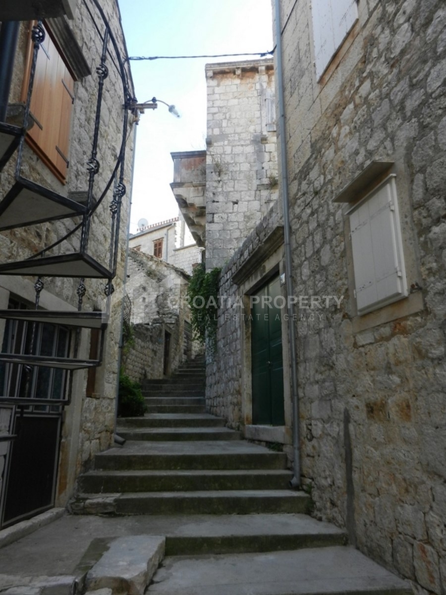 Ein renoviertes charmantes altes Steinhaus in Zentrum von Vis ist zum Verkauf, gebaut im 17. Jahrhundert. Das Haus liegt 100 Meter vom Hafen und ca. 50 Meter vom Meer entfernt. Es besteht aus 3 Etagen (Weinkeller (jetzt Studio-Apartment) im Erdgeschoss, erster und zweiter Stock) sowie einem zusätzlichen Dachboden, der zuvor nicht genutzt wurde. Die Gesamtbruttofläche des Hauses beträgt ca. 132 m2. Der Dachboden hat einen schönen Blick auf die Bucht und den Hafen von Vis. Direkt neben diesem schönen alten Steinhaus gibt es einen geschlossenen Hof und eine Außentreppe aus Stein. Die erste Etage ist über die Außentreppe aus Stein erreichbar. Es gibt auch einen schönen Steinbalkon mit Blick auf die Gasse. Die Dachrinnen sind ebenfalls aus Stein. Das Anwesen ist als Barockdenkmal klassifiziert und steht als solches unter dem Schutz der UNESCO. Die Dokumente sind 1/1 gültig!