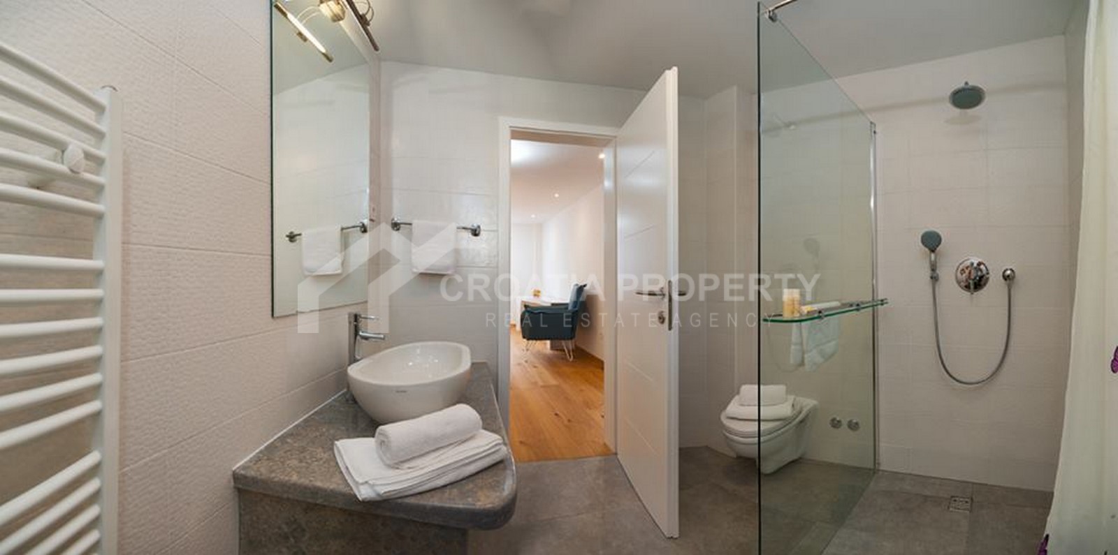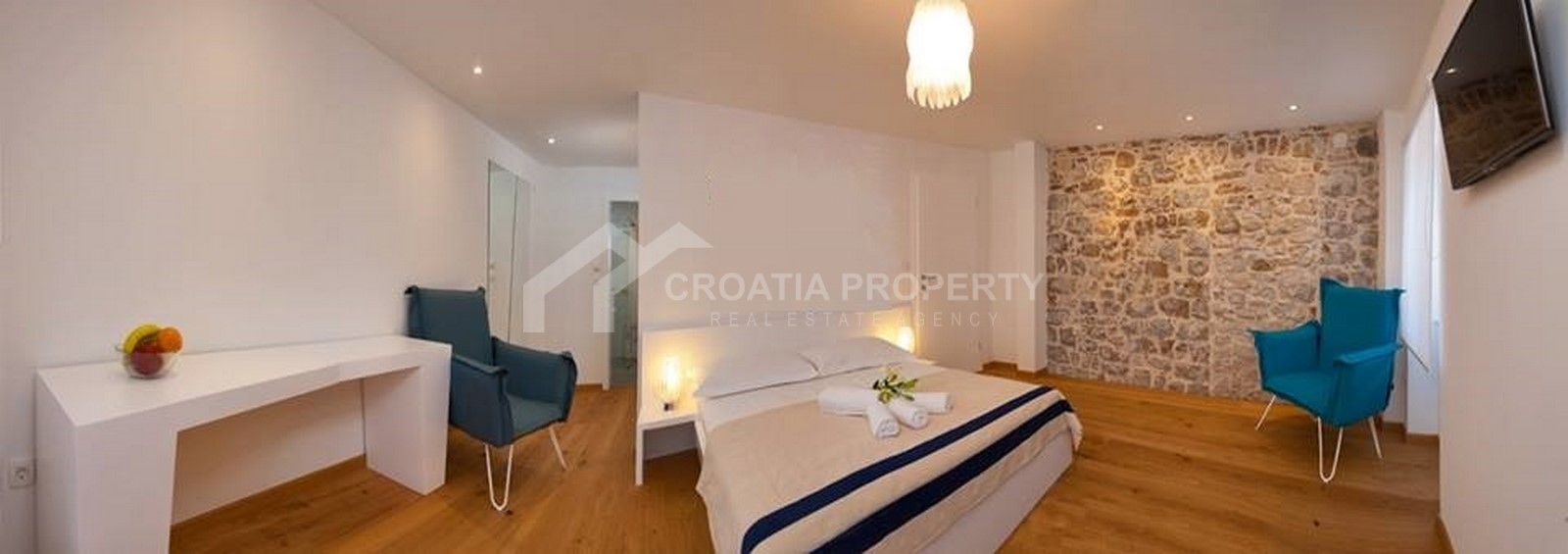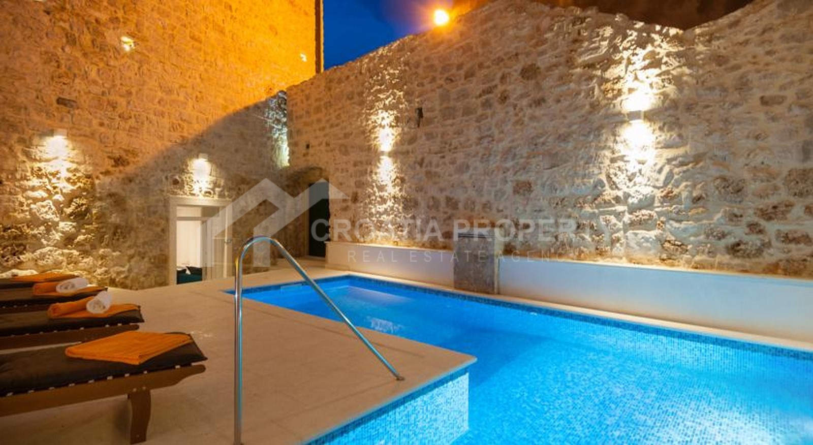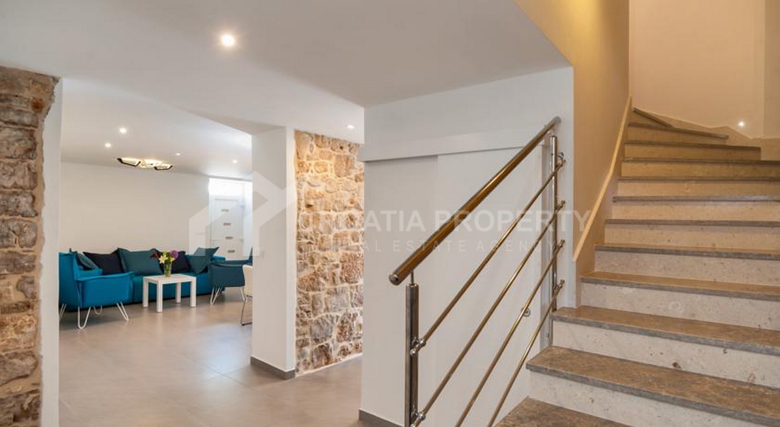 Ein ausgezeichnetes Steinhaus zum Verkauf Bol hat eine Wohnfläche von ca. 280 qm und es besteht aus einem Erdgeschoss, zwei Obergeschossen und einem Dachgeschoss, mit Pool, großen Terrassen und insgesamt 5 Schlafzimmern und Bädern. Das Erdgeschoss besteht aus einem offenen Wohnbereich, einem Badezimmer / Waschraum, einem Whirlpool und einer Sauna. Eine Innentreppe verbindet diese Ebene mit dem Rest des Hauses. Der erste und der zweite Stock haben jeweils zwei Schlafzimmer, die über ein eigenes Bad verfügen. Das Dachgeschoss umfasst das letzte Schlafzimmer und eine Terrasse von 30 m² mit Blick auf die kleine Stadt und das schöne Meer.