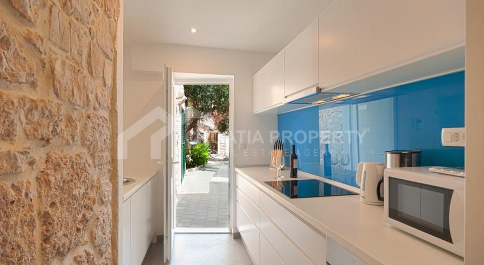Ausgezeichnetes Steinhaus zum Verkauf Bol verfügt über eine große Poolterrasse von 70 m² mit Maschinenraum, Außendusche und Grill. Das Anwesen wurde zu sehr hohen Standards renoviert und es wird voll ausgestattet, möbliert, mit einem Split-System AC und der notwendigen Infrastruktur verkauft. Der Hof verfügt nicht über einen privaten Parkplatz.