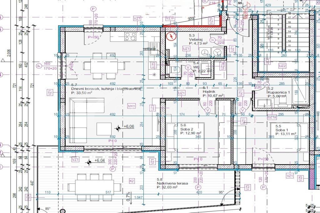 Wir vermitteln beim Verkauf eine geräumige Zwei-Zimmer-Apartment Tribunj, nur 550 Meter vom Strand entfernt. Dank der Lage ist das Apartment in der Nähe aller Annehmlichkeiten wie Cafés, Restaurants und Geschäfte. Das Apartment S3 befindet sich im ersten Stock des Gebäudes. Sie hat eine Gesamtfläche von 113 Quadratmetern, davon 30,83 Quadratmeter Terrasse. Unter Berücksichtigung der Kosten für Parkplatz und überdachte Terrasse beträgt die Nettonutzfläche das Apartment 102,59 Quadratmeter. Das Apartment verfügt über einen Flur, einen Hauswirtschaftsraum, ein WC, ein Badezimmer, zwei Schlafzimmer, eine offene Küche sowie ein Wohn- und Esszimmer. Von der offenen Wohnfläche aus gelangt man auf die Terrasse. Ein Außenstellplatz ist im Preis inbegriffen.