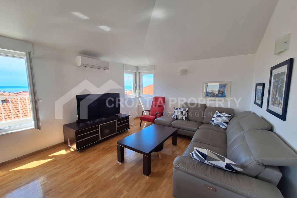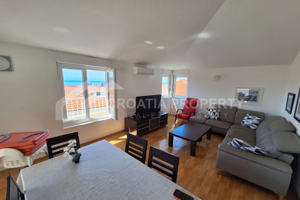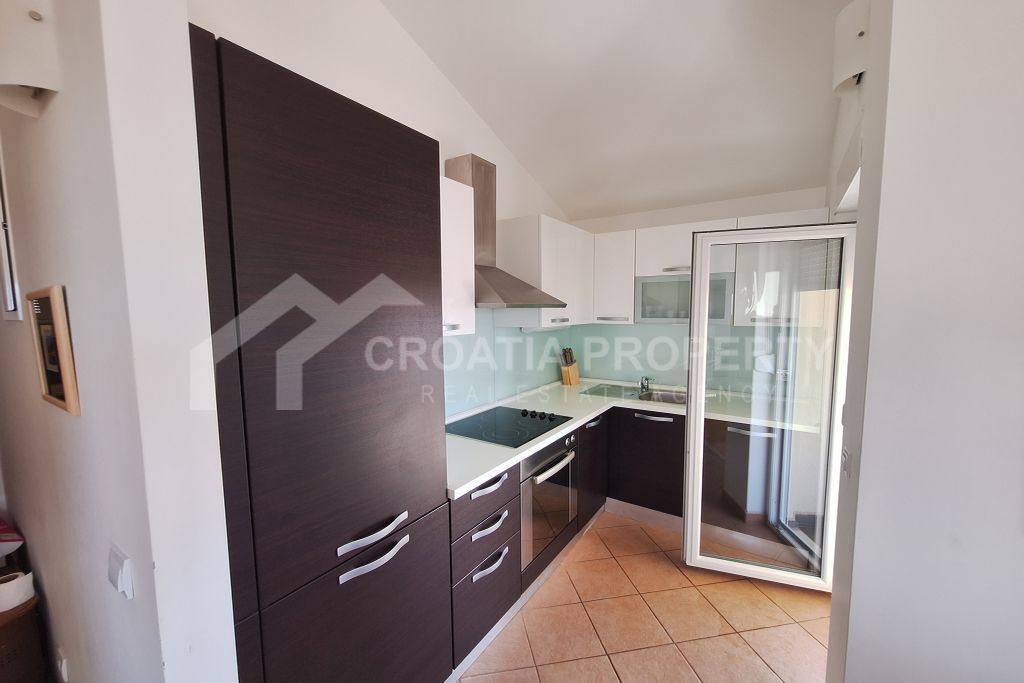Wir vermitteln den Verkauf einer exklusiven Wohnung in begehrter Lage im neueren Stadtteil. Die Wohnung befindet sich im zweiten Obergeschoss eines Dreifamilienhauses und bietet eine Wohnfläche von 74,80 m². Sie verfügt über drei Schlafzimmer, einen Eingangsbereich, ein Badezimmer, ein separates WC und ein helles, geräumiges Wohnzimmer mit offener Küche und Essbereich. Zusätzlich gibt es eine geschmackvoll eingerichtete Loggia. Die Wohnung bietet Meerblick.