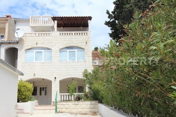 Erster und zweiter Stock haben je zu zwei 1-Zimmer Appartements und Dachgeschoss verfügt über einer 2-Zimmer Wohnung. Jede Wohnung hat Ausgang auf die Terrasse oder Balkon, wovon man einen wunderschönen Überblick aufs Meer hat. Das Haus ist im Ganzen möbliert und klimatisiert. Es ist ideal für touristische Miete, weil jede Wohneinheit selbständig ist.