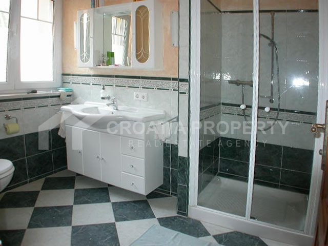 Die Villa besteht aus zwei Teilen, die miteinander verbunden sind. Der vordere Teil besteht aus zwei Stockwerken und Dachboden, während die Rückseite aus drei Stockwerken besteht, und in der Mitte befindet sich ein Turm, wo sich ein Raum mit einem schönen offenen Blick aufs Meer befindet. Im Erdgeschoss befindet sich die Hauptwohnung von 100 m2 mit einer überdachten Terrasse mit Blick auf das Meer, und neben der Hauptwohnung gibt es auch eine kleinere Gästewohnung von 19 m2 mit separatem Eingang, der auch eine Terrasse hat.