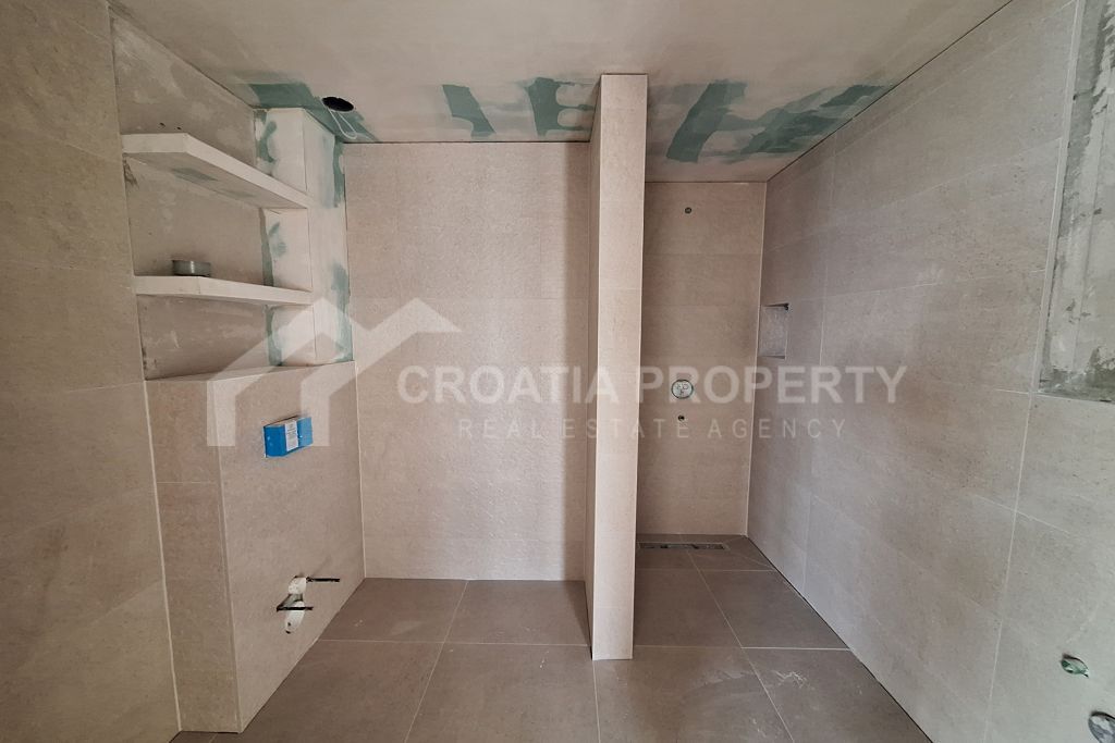Die Gesamtfläche der Wohnung beträgt 75,48 m². Sie besticht durch ihre hochwertige Bauweise und die edle Ausstattung, darunter erstklassige Schreinerarbeiten, moderne Bodenbeläge und optisch ansprechende Keramikfliesen. Die Zweizimmerwohnung mit Parkplatz Makarska ist dank ihrer Südostausrichtung und der großen Glasfronten lichtdurchflutet und vermittelt ein offenes Raumgefühl. Verkäufer ist ein Unternehmen; Finanzierungsmöglichkeiten stehen potenziellen Käufern zur Verfügung. Schulen und Geschäfte sind in etwa zehn Minuten zu Fuß erreichbar, der Strand in etwa zwanzig Minuten. Die Immobilie befindet sich in einem ausgezeichneten Zustand.