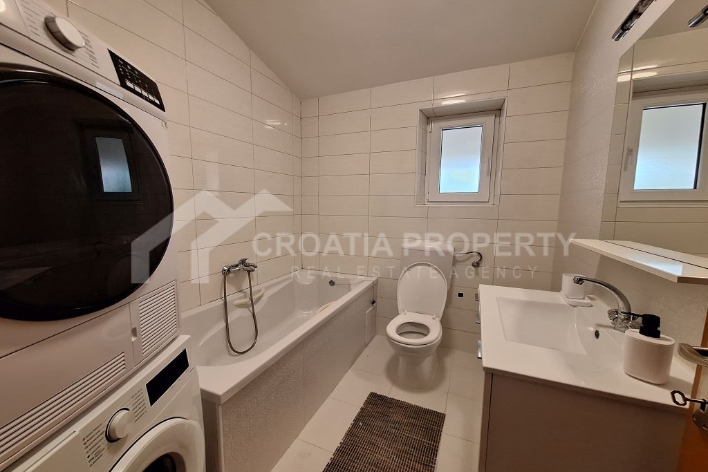 Ova apartmanska kuća u blizini mora Duće okružena je popločanom parcelom s nekoliko parkirnih mjesta, roštiljem… Kuća je u izvrsnom stanju: redovito održavana, namještena i opremljena visokokvalitetnim namještajem i kućanskim aparatima provjerenih proizvođača – sve je spremno za preuzimanje uhodanog posla najma. U neposrednoj blizini nalazi se i niz sadržaja, poput trgovina, restorana, kafića. S obzirom na iznimnu blizinu mora, visoku razinu stanja nekretnine i vrlo lijep pogled, ovo je izvrsna prilika. Vlasništvo je uredno.