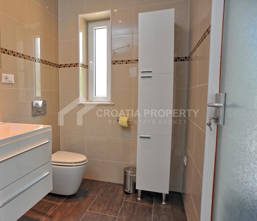 Izvrsna dalmatinska vila za prodaju na otoku Braču udaljena je od centra mjesta i plaže tek pet minuta laganog hoda. Vila je izgrađena na parceli od oko 1000 m2 i sastoji se od podruma, prizemlja, kata i potkrovlja. Svaka etaža sa svojim sadržajem priča posebnu priču i čini boravak u vili još ugodnijim. U podrumskom dijelu uređene su prostorije za fitness i kupaonica. Prizemlje se sastoji od dnevnog boravka gdje je smješten kamin, dvije kuhinje, dvije blagovaonice, sobe za bilijar, spreme (praonice), dvije spavaće sobe sa kupaonicama, prostora za roštilj, WC-a te hodnika kroz koji se proteže prekrasno kameno stubište. Prvi kat se sastoji od predsoblja te četiri spavaće sobe sa vlastitim kupaonicama. U visokom potkrovlju smještena je čajna kuhinja.