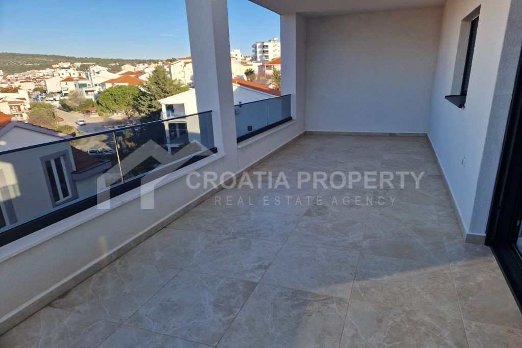 Prodaje se novi penthouse apartman Čiovo na drugom katu nove zgrade u Okrugu Gornjem. Zgrada se nalazi 200 metara od glavne plaže u Okrugu, u mirnoj ulici i blizu svih potrebnih sadržaja. Apartman ima ukupnu unutarnju površinu od 92,96 m², plus još 2 terase: 23,93 m² terase unutar apartmana i još 105,21 m² krovne terase. Točnije, 142,84 m² neto površine s koeficijentima svih dodataka.