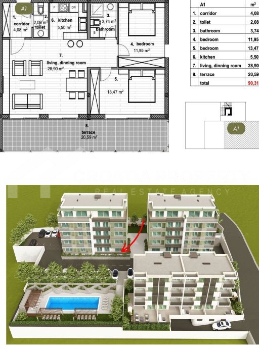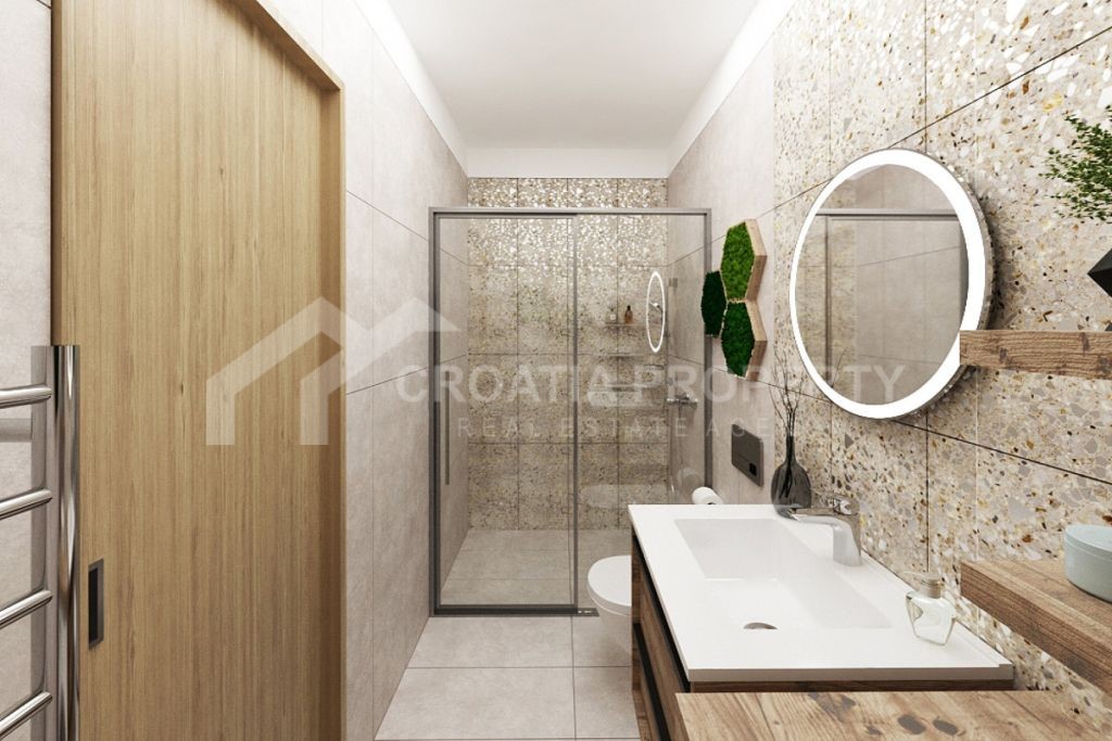 Ovaj novi stan s garažnim mjestom Makarska, iznimne je kvalitete i modernog, vrlo funkcionalnog dizajna: klima uređaji u svim sobama, podovi provjerenih proizvođača, prvoklasna stolarija i keramika, bazen dostupan svim stanarima… Stan je pun svjetla i ostavlja dojam izvrsno izgrađene nekretnine za miran obiteljski odmor. Cijena također uključuje parkirno mjesto u garaži, a budući da je investitor pravna osoba, nema obveze plaćanja 3% poreza na nekretnine. U blizini se nalaze potrebni sadržaji kako za odmor, tako i za cjelogodišnji život. Vlasništvo je uredno.