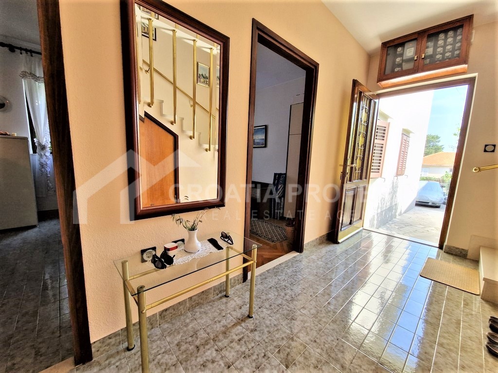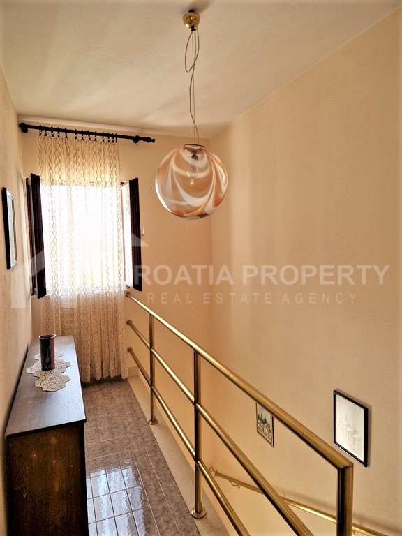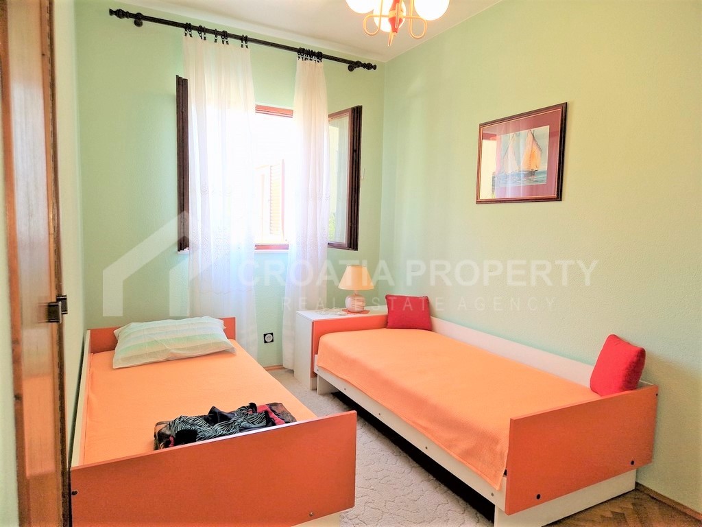 Na prodaju je prostran i namješten dvoetažni stan u Supetru na otoku Braču. Nekretnina se proteže preko prizemlja i prvog kata, a ukupna površina iznosi 88 četvornih metara. Prizemlje se sastoji od hodnika, jedne manje spavaće sobe, dnevnog boravka s blagovaonicom i kuhinjom, uz wc i malu ostavu koji su smješteni ispod polukružnog stubišta. Prvi kat nekretnine sastoji se od hodnika, jedne kupaonice, tri spavaće sobe i malog balkona.