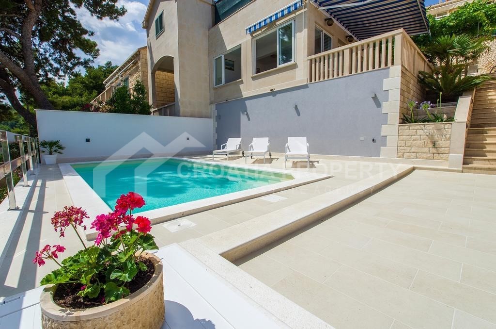 Vila blizu mora na prodaju Brač, sada je na raspolaganju vrlo prostrano imanje smješteno na području Selca na otoku Braču. Vila ima tri etaže (prizemlje, prvi i drugi kat), dok je ukupna površina 320m2. Sastoji se od tri odvojena apartmana s ukupno 7 spavaćih soba i 9 kupaonica. Upravo je dovršena renovacija cjelokupnog prvog kata kuće. Štoviše, kuća ima lijepu natkrivenu terasu s izvanrednim pogledom na more. Vrt koji je dobro održavan i prepun raznih mediteranskih biljaka također nudi i bazen sa sunčalištem i 4 parkirna mjesta. Druga važna prednost je dodatni objekt koji je namješten kao restoran, pa je ova vila više nego idealna za nekoliko obitelji ili kao nekretnina za iznajmljivanje. Ova lokacija je mirna, u neposrednoj blizini mora i poznatih bračkih plaža. Vlasništvo je potpuno.