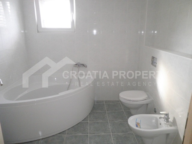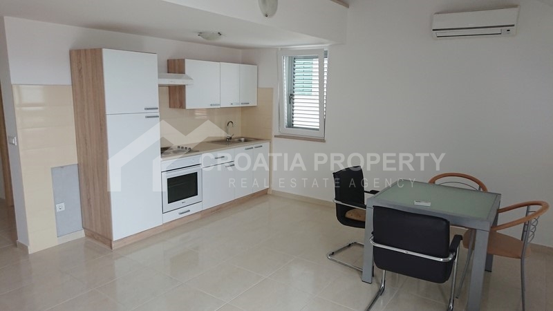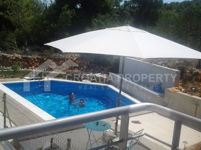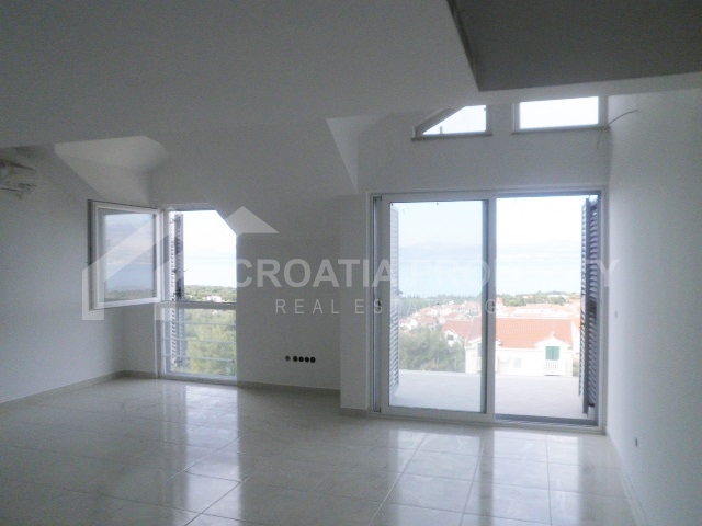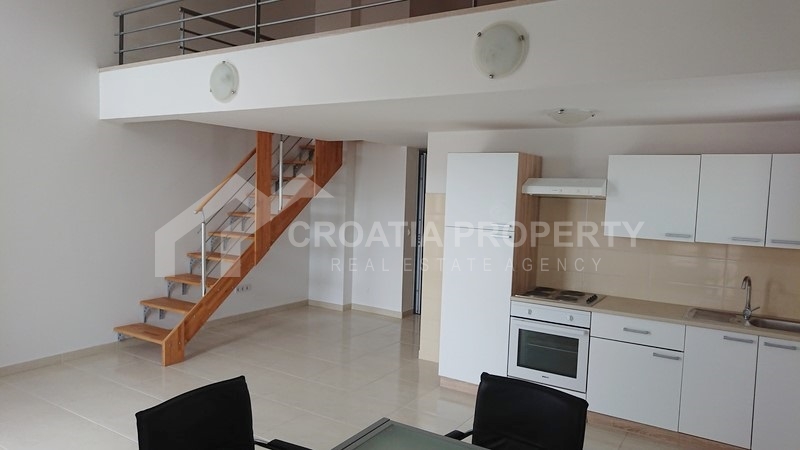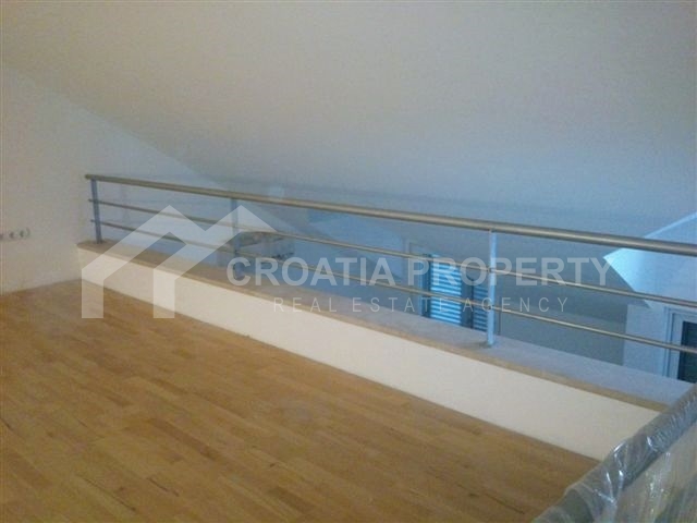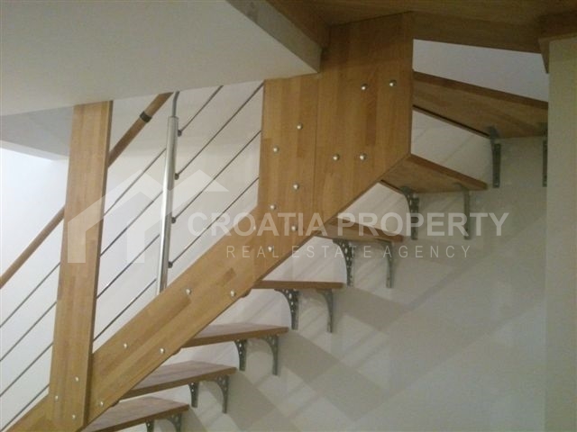 Apartment near sea Brac island. We are selling a very nice two bedroom apartment on two floors located in a building in an attractive location in Supetar on the island of Brac. Net area of the apartment is 73.28 sqm. On the first floor there are living room, kitchen, bedroom, bathroom and two terraces. The interior stairs reach the upper floor of the gallery where there is a bedroom and a bathroom. The living room and the bathroom have underfloor heating. All shared tenants have storage room, garden and swimming pool. Documentation is valid.