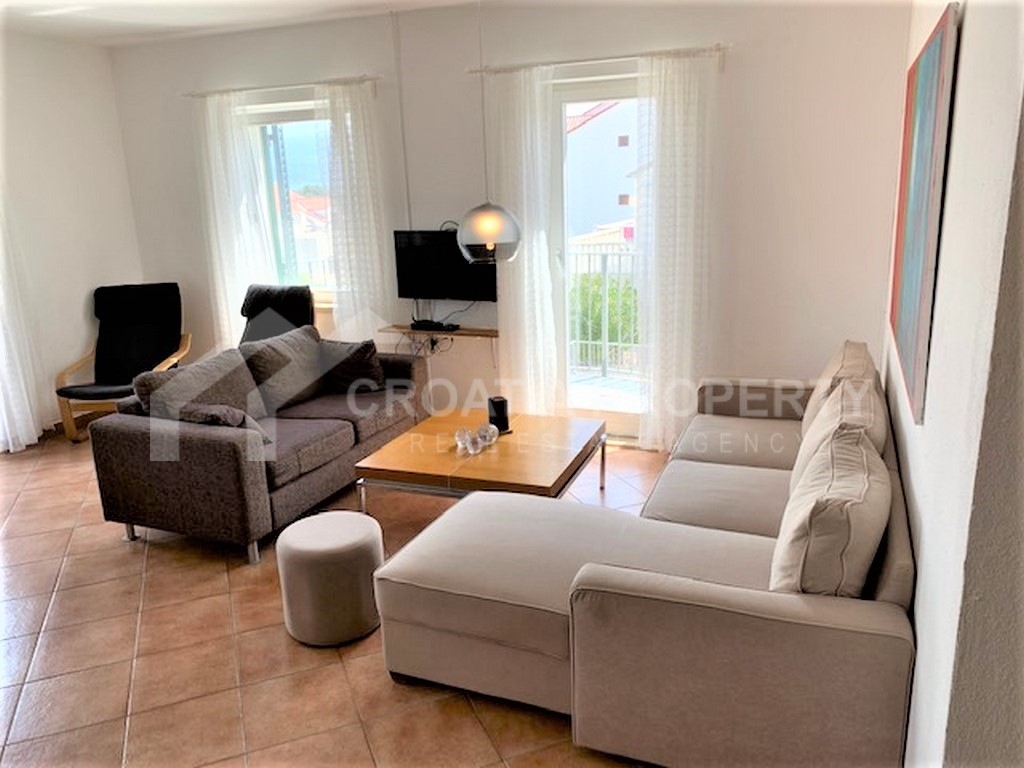 A beautiful sea-view villa with pool on Brac is for sale. Its total surface is 303 square meters and it is placed on a plot of land with a surface of 395 square meters. The basement level of the house features the pool equipment. The ground floor level includes two apartments, one of 56 sqm and the other 59 sqm. Each of them includes two bedrooms, one bathroom, a living space and a sea-view balcony. The first floor includes two more apartments. One is a spacious three-bedroom with two bathroom and three sea-view balconies, its surface being 86 sqm. The other apartment is a one-bedroom of 42 sqm, also including a sea-view balcony.