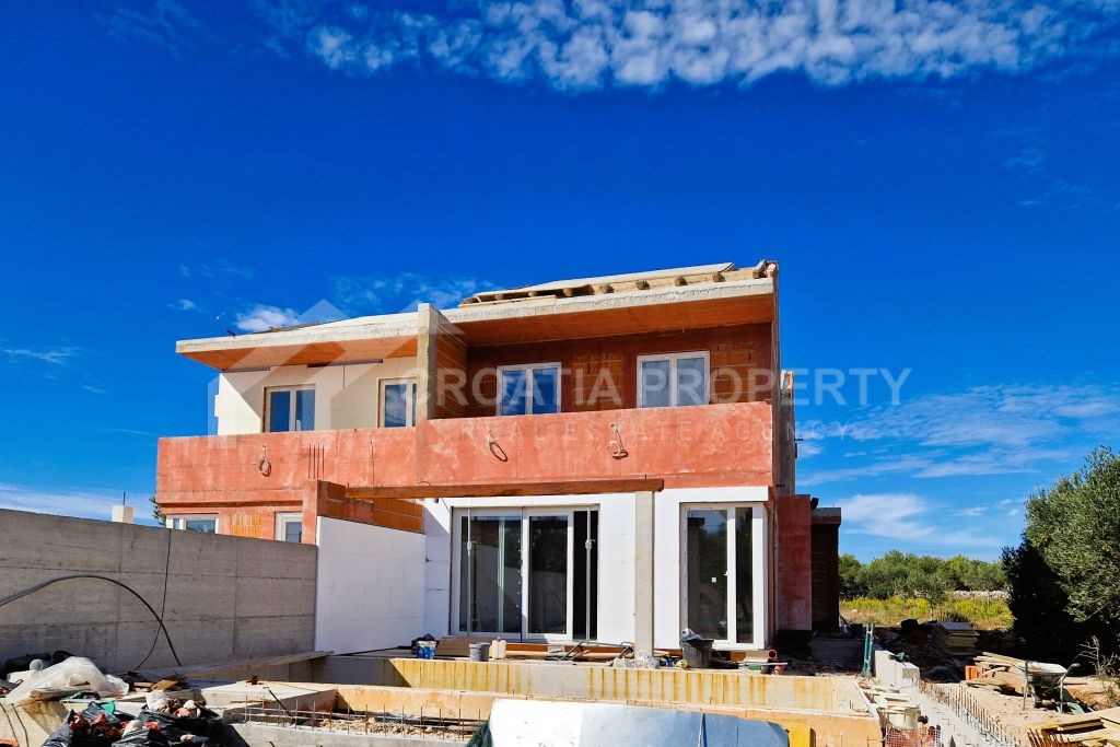 On the first floor of this beautiful terraced house Murter there are 2 bedrooms (1 with a terrace), a bathroom and a storage room. The house is superbly equipped: carpentry with mosquito nets and shutters, high-quality ceramic tiles, underfloor heating. The yard is completely fenced, and there is also a parking space for cars. The house is located in a beautiful quiet street only 680 metres from the pebble beach and 550 metres from the city center. The house will be ready for occupancy by summer 2026.