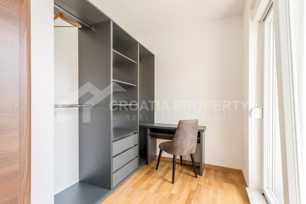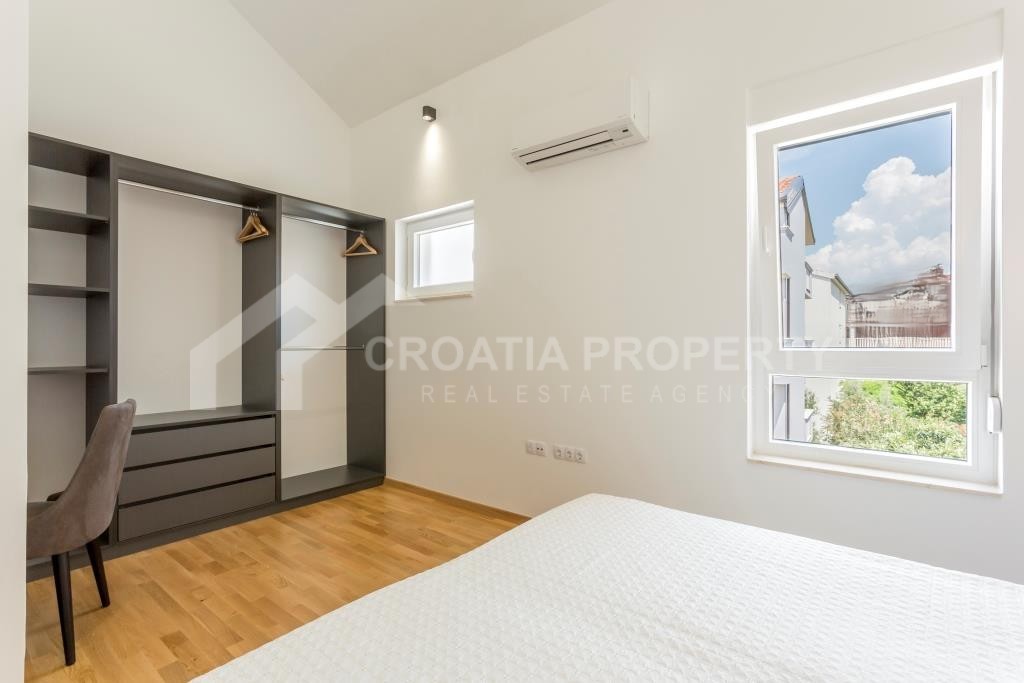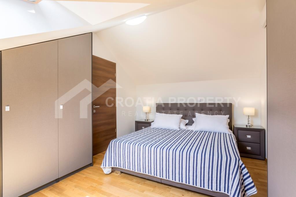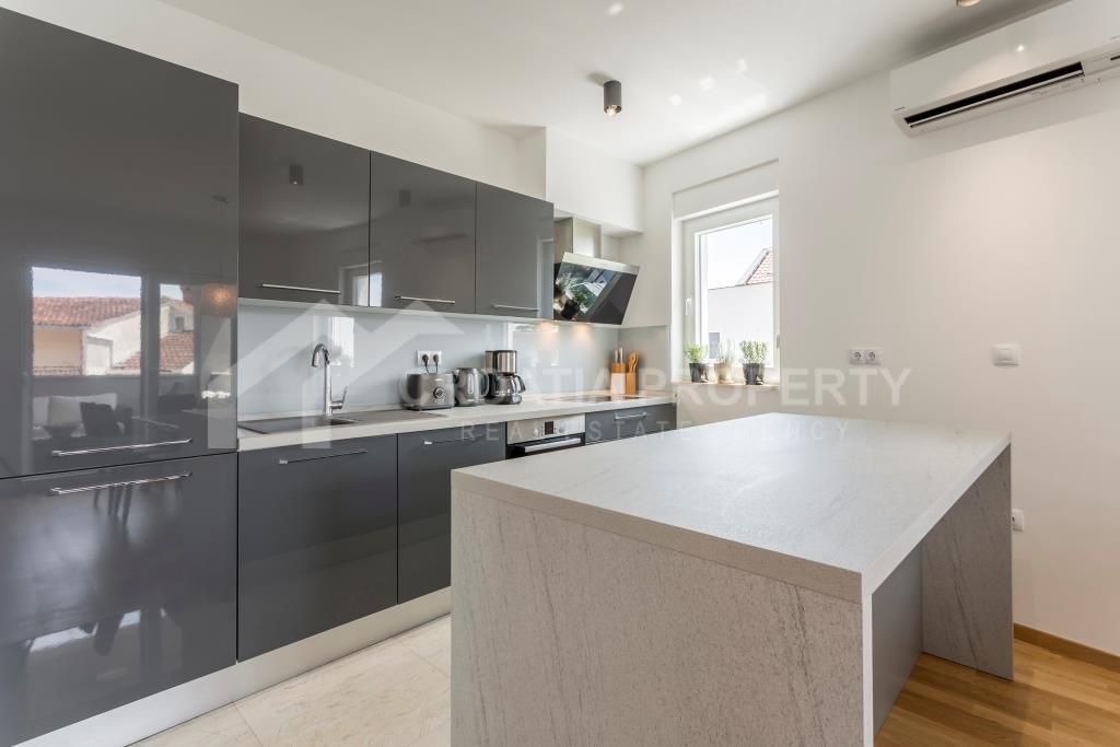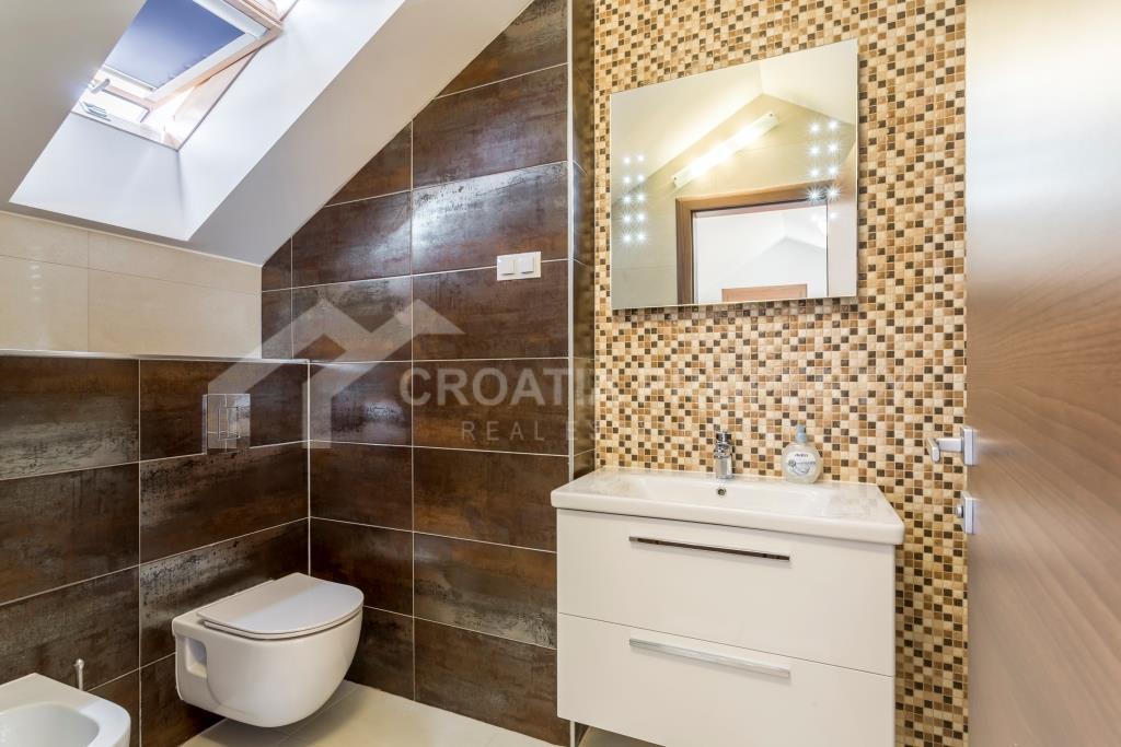 The lower level features an entrance hall, a hallway, a bathroom, a guest toilet, and two generous bedrooms, each equipped with its own wardrobe. One of these bedrooms offers access to a small loggia. Additionally, there is a large living area that includes a kitchen and dining space. Both the living and dining rooms lead out to a second loggia that overlooks the sea.On the upper level, you’ll find a gallery that serves as a perfect play area and an additional bedroom with its own bathroom. The capacious apartment by the beach Podstrana comes fully furnished and equipped, with all items included in the asking price. Each room is fitted with air conditioning, and the external wooden features are made from PVC. Moreover, the property also includes two designated outdoor parking spots, which are part of the sale. The ownership documents are in good order.