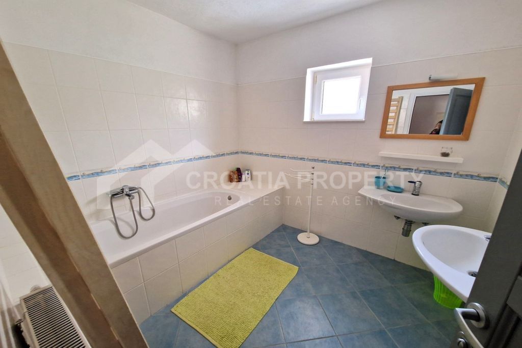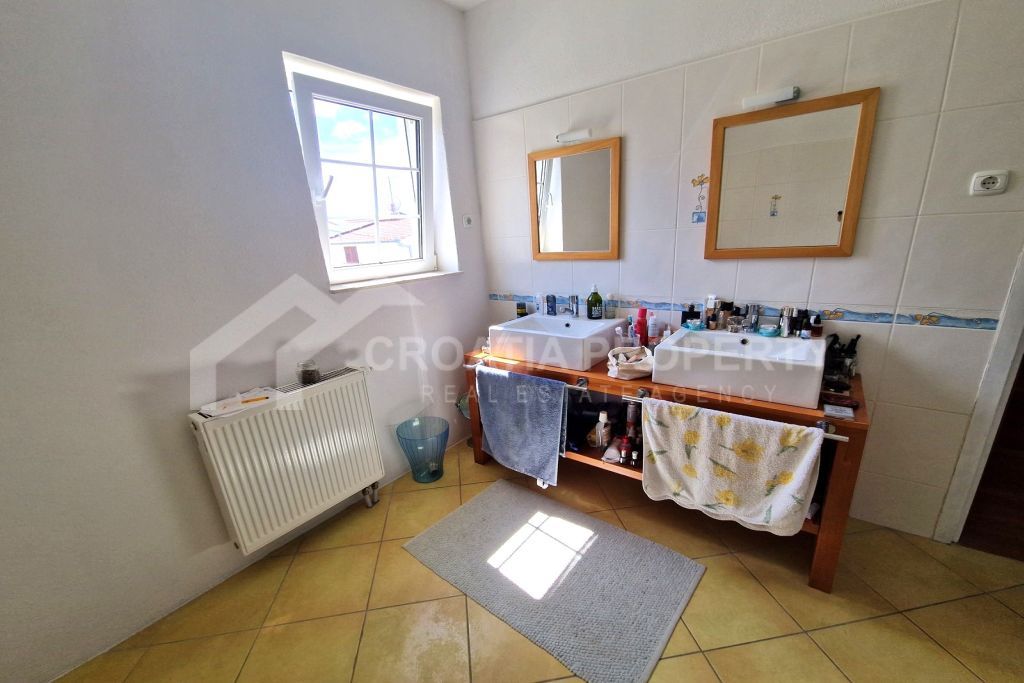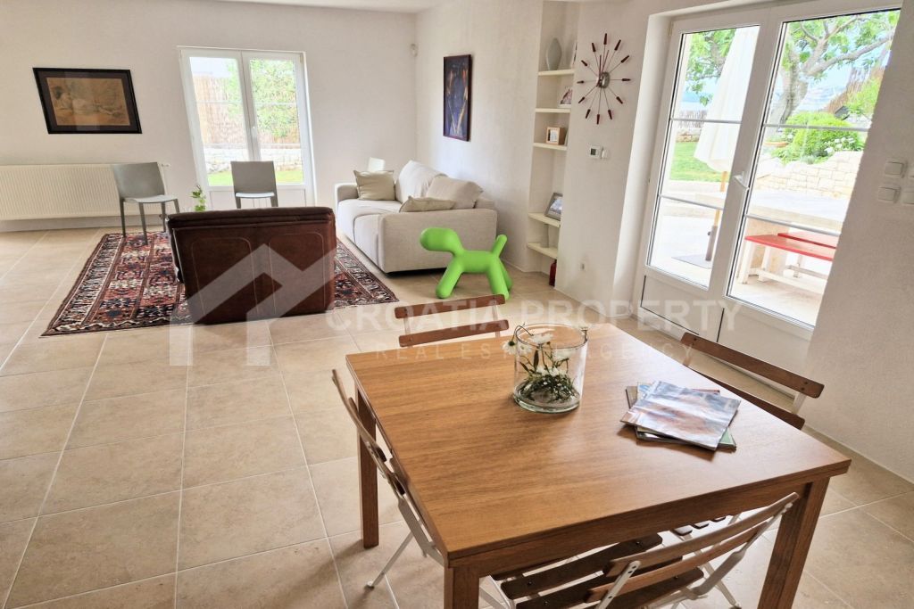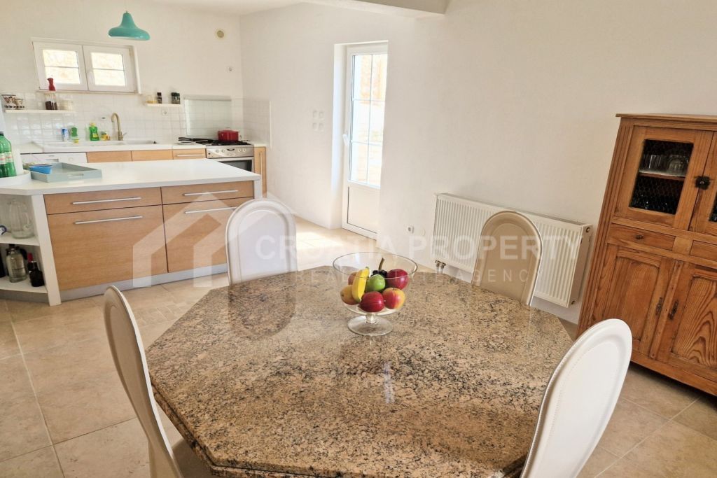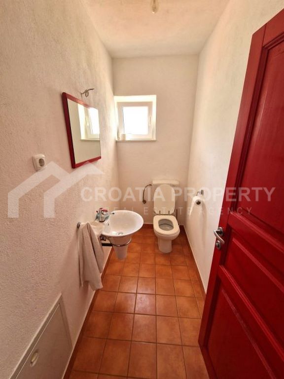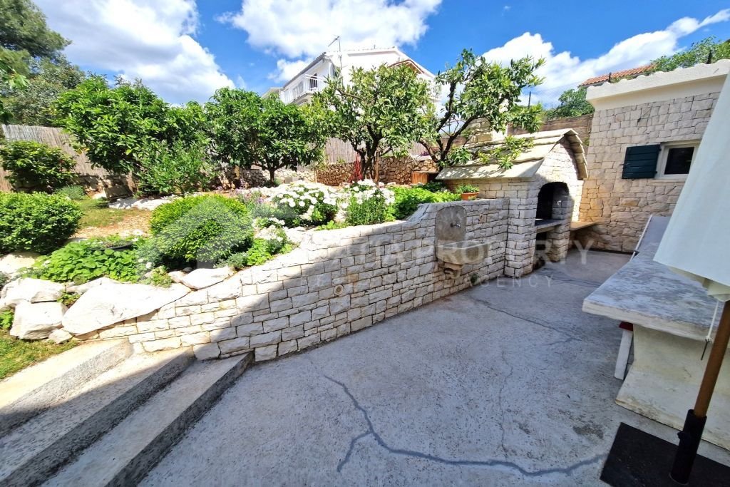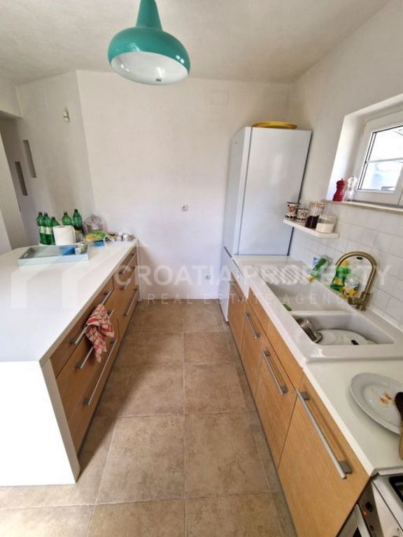 We are pleased to present a stunning residence designed in authentic Mediterranean style that is truly a visual delight. This home is situated on a serene street just 300 meters away from the pebble beach on Ciovo and is conveniently near all essential services. Constructed to exceptional standards, it features centralized water heating through both radiators and underfloor systems, exquisite wooden shutters, and elegant French windows. Set on a generous plot exceeding 600 square meters, this mediterranean style house with cultivated garden Ciovo offers 196 square meters of interior living space, along with a technical room or tavern measuring 16 square meters and an additional storage space of 12 square meters.
