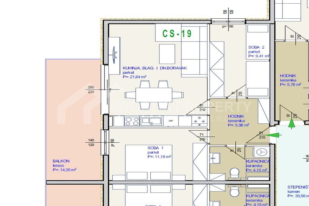 We mediate in the sale of a unit in a newly constructed complex (building C) situated in Seget Donji, merely 250 meters from the pebble shore and a brief stroll from various amenities including shops, eateries, and cafes. New seaside apartment with terrace  Seget S19 is positioned on the third floor of a building featuring an elevator, offering 52. 36 square meters of living space along with an additional 14. 35 square meters of terrace that has limited views of the sea. A parking garage can be purchased for an additional price of €15,000.