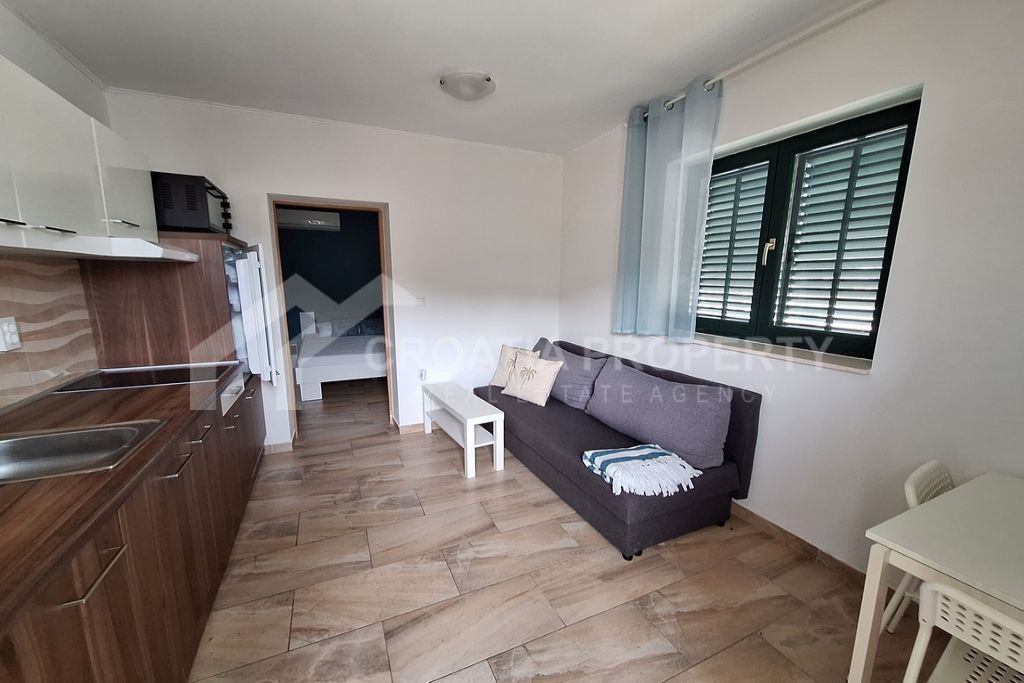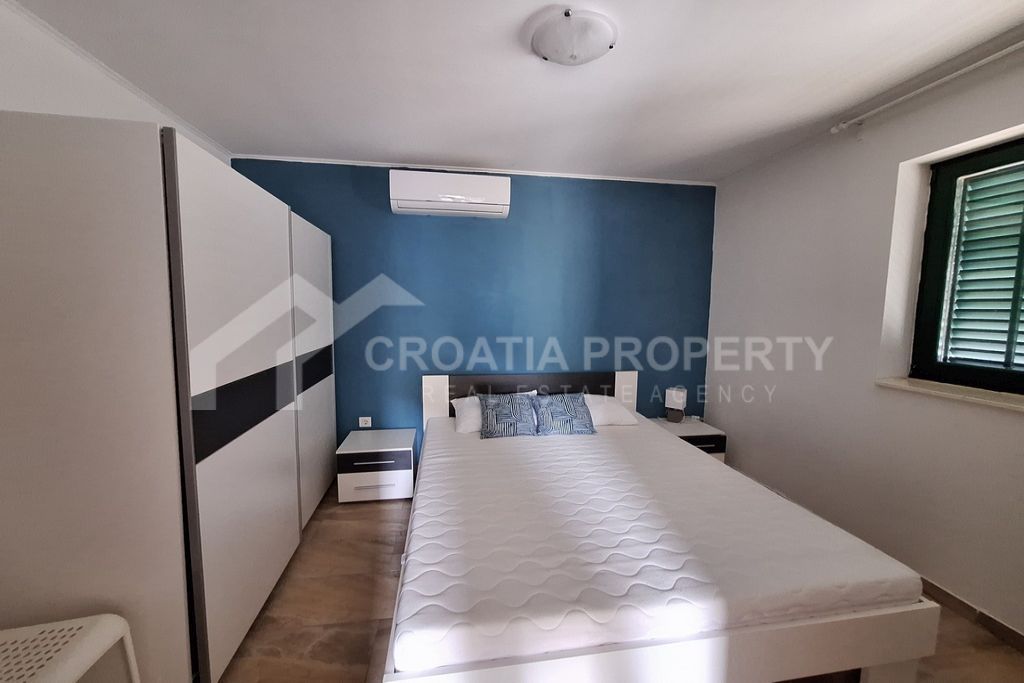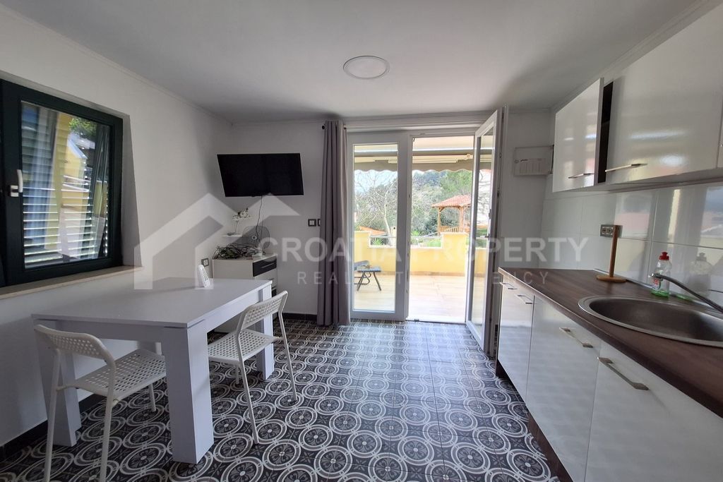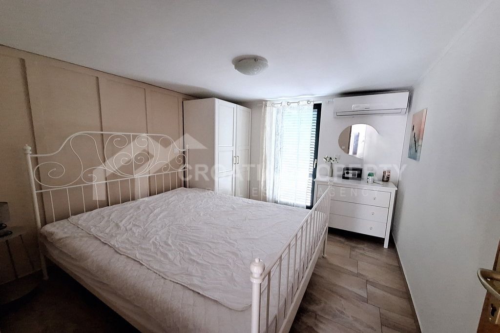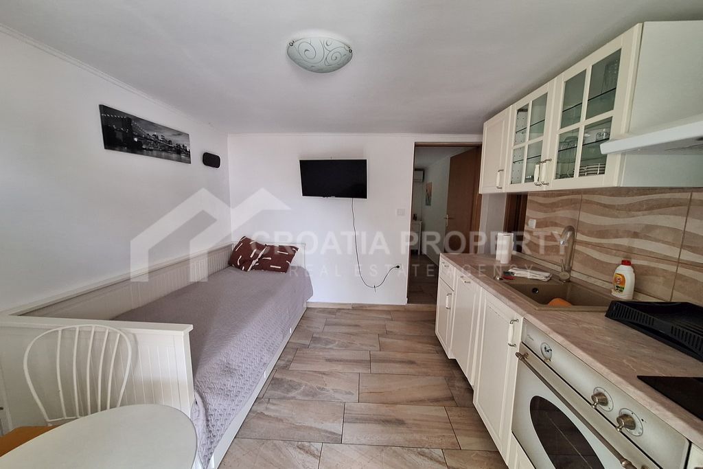 The apartments are in superb condition, outfitted to meet higher rental standards, and the overall property is consistently well-maintained, requiring no significant investments at present. The beach can be reached in approximately ten minutes on foot, while a grocery store, pharmacy, and several dining options are located just 200 meters from the house. This spacious house with sea view Marina is perfectly suited for a rental business due to its multiple apartment units, and its proximity to numerous amenities makes it a viable option for year-round living. Ownership documentation is in order.